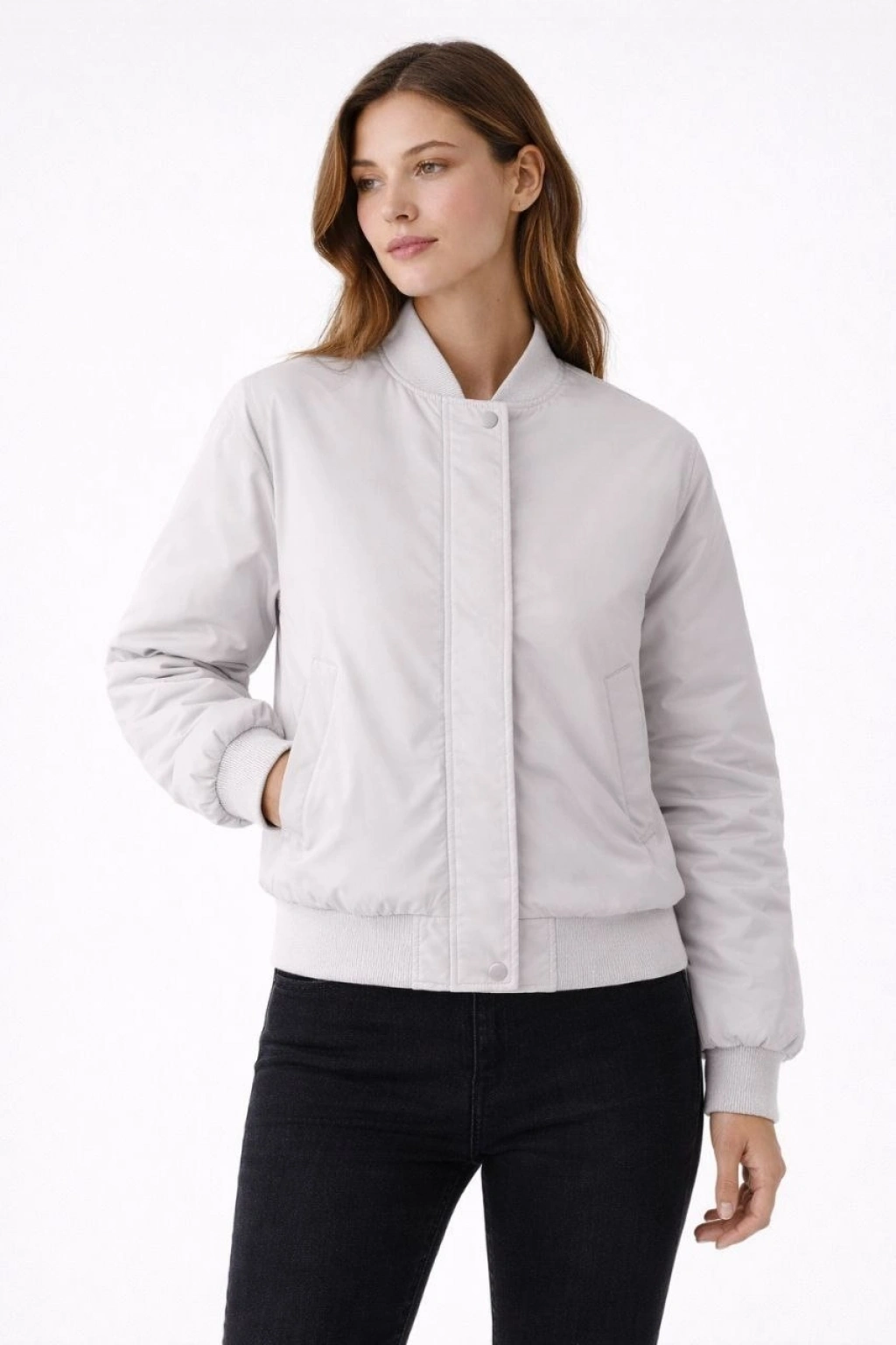 Kadın Premium Bomber Ceket Çıtçıt Kapamalı, Ribana Manşetli, Astarlı, Regular Fit Mont - Siyah