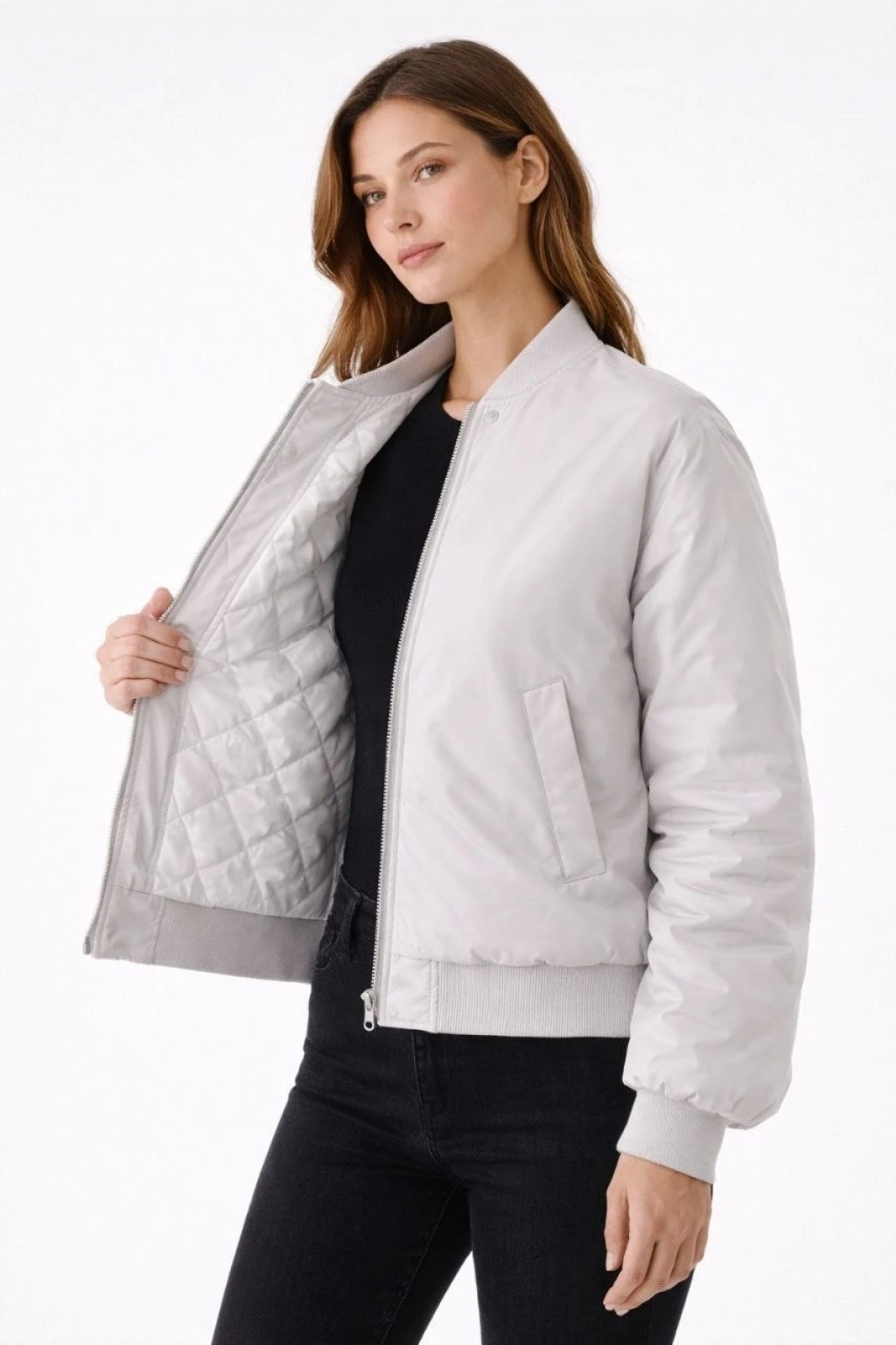 Kadın Bomber Mont Ceket – Su İtici Kumaş, Kapitone Astarlı, Fermuarlı, Kışlık - Siyah