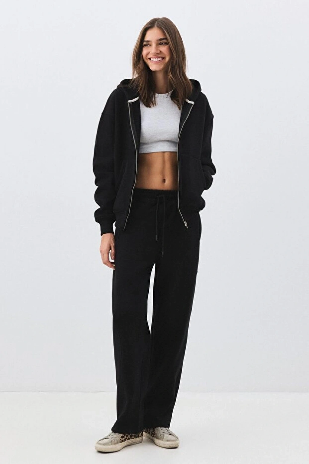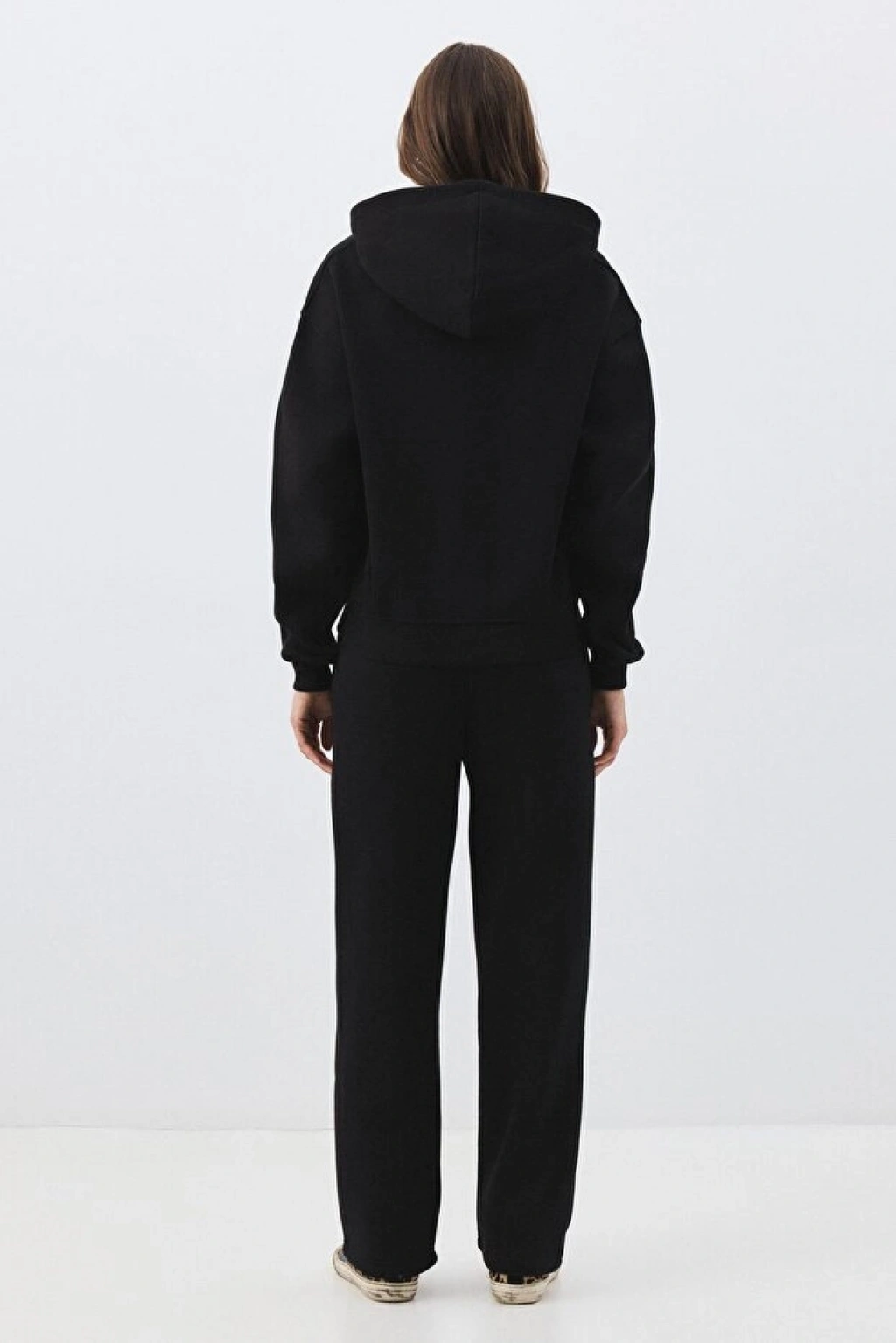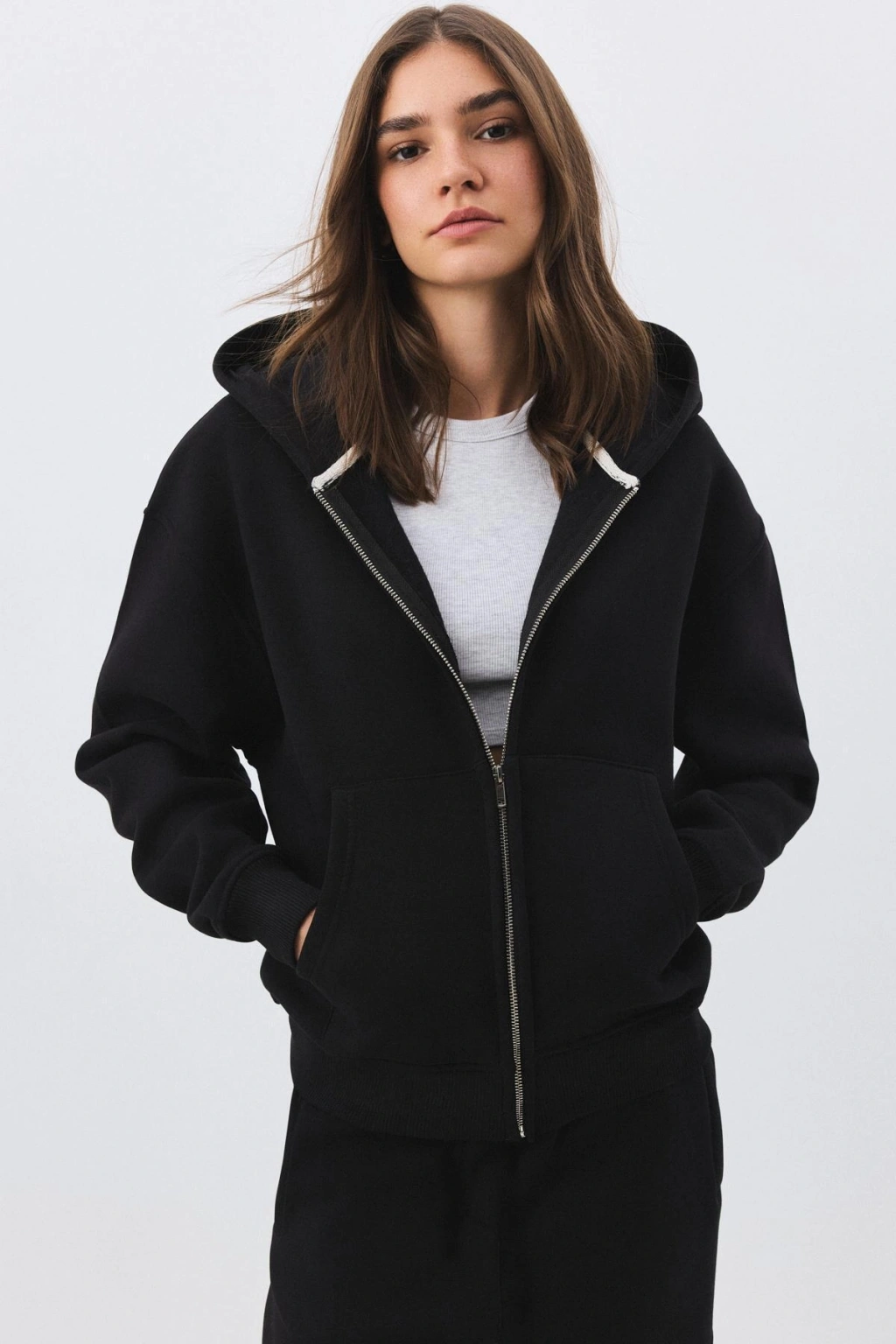 Kadın Premium Fermuarlı Kapşonlu Sweatshirt Siyah 2032