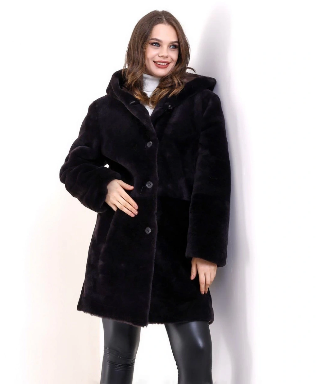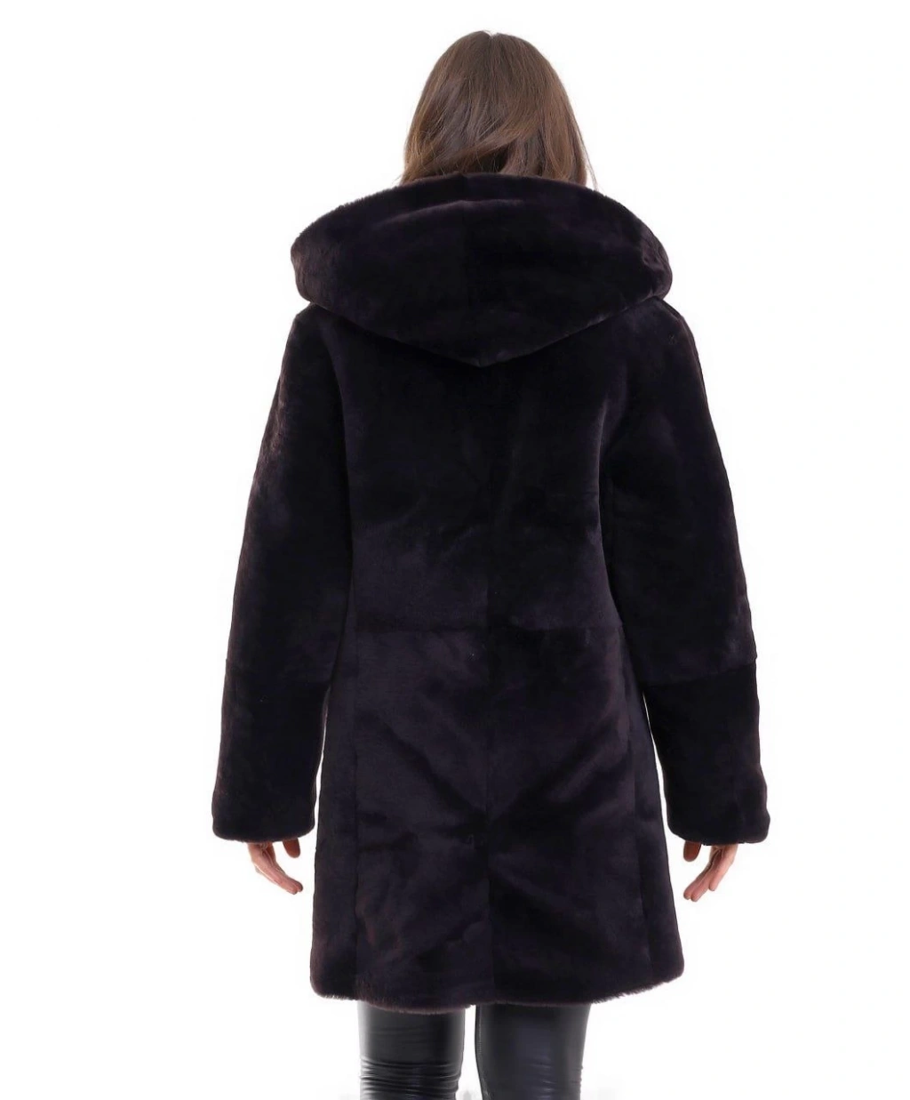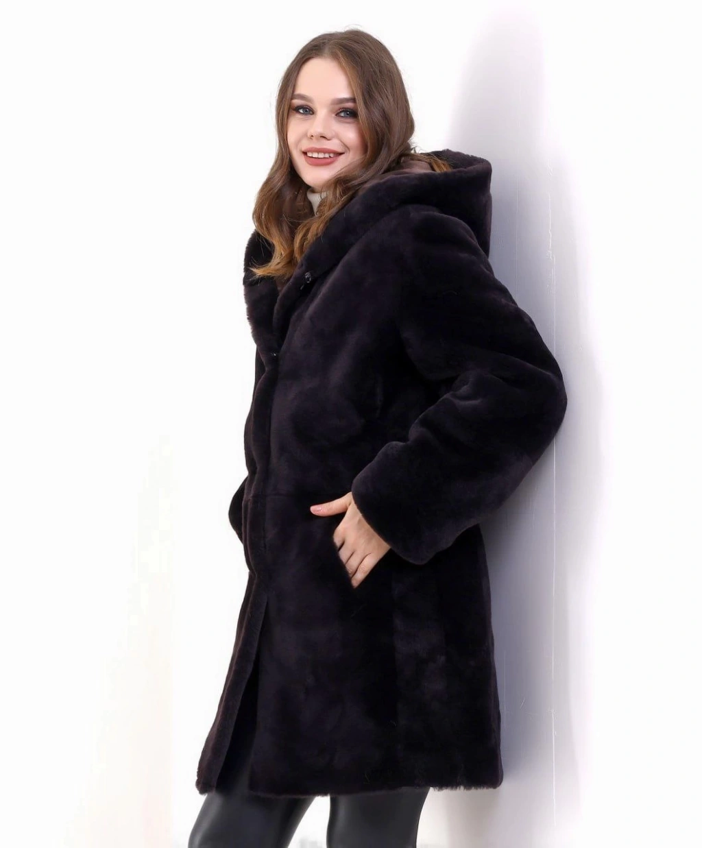 Kadın Uzun Kollu Yakalı Hakiki Kürk - Kahve