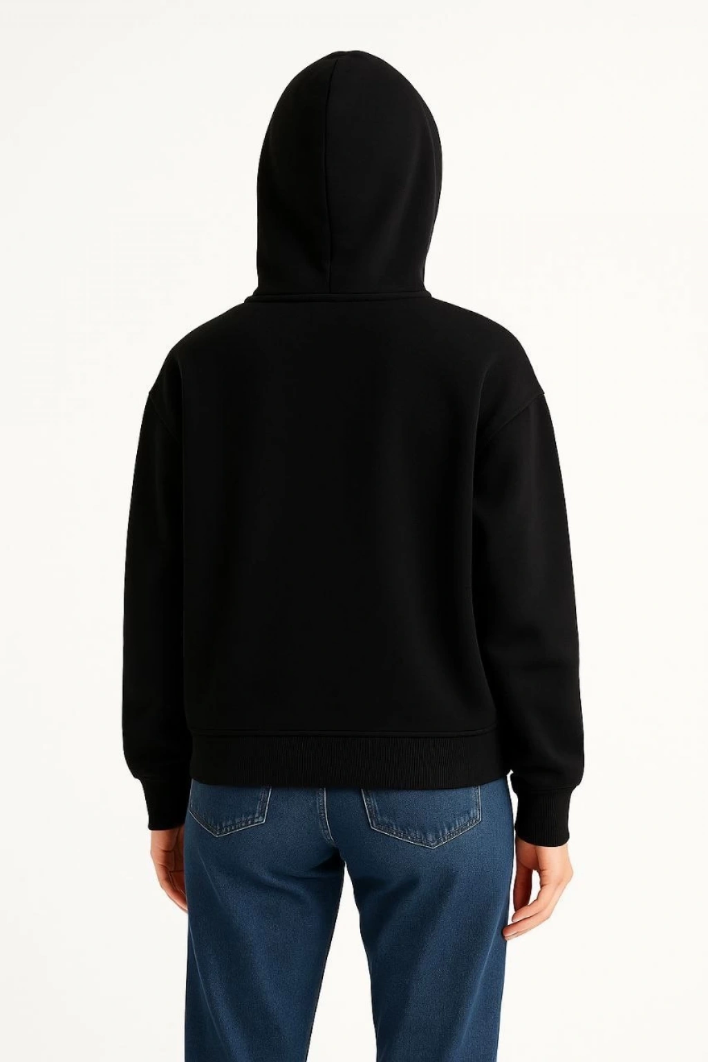 Kadın Üç İplik Kapüşonlu Kanguru Cepli Sweatshirt hoodie - Siyah