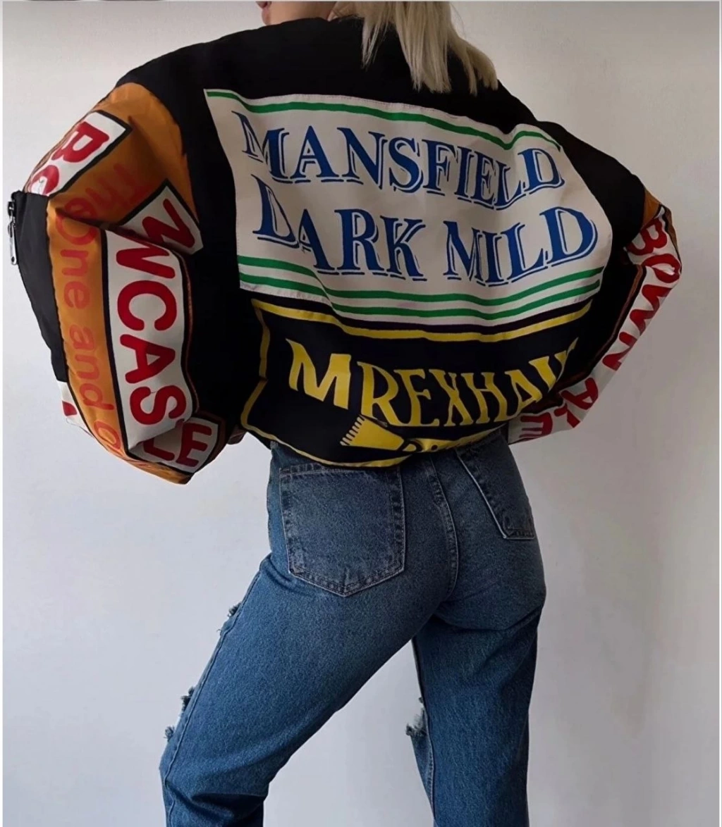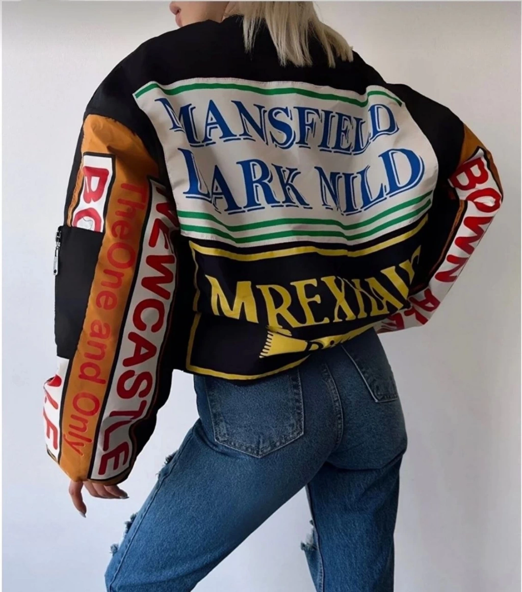 Kadın Kolej Ceket – Kareli Oduncu Kumaş, Kolları Suni Deri, Fermuarlı, İçi Kapitone Astarlı, Nakışlı Oversize Bahar & Kış Stil - Gri