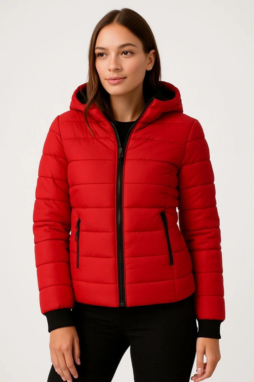 KADIN BOMBER MONT CEKET – SU İTİCİ KUMAŞ, KAPİTONE ASTARLI, FERMUARLI, KIŞLIK - KIRMIZI