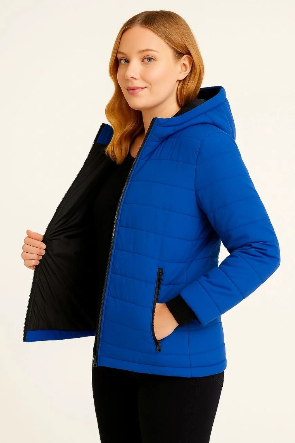 KADIN BOMBER MONT CEKET – SU İTİCİ KUMAŞ, KAPİTONE ASTARLI, FERMUARLI, KIŞLIK - SAKS MAVİSİ