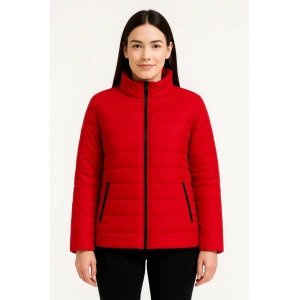 KADIN BOMBER MONT CEKET – SU İTİCİ KUMAŞ, KAPİTONE ASTARLI, FERMUARLI, KIŞLIK - KIRMIZI