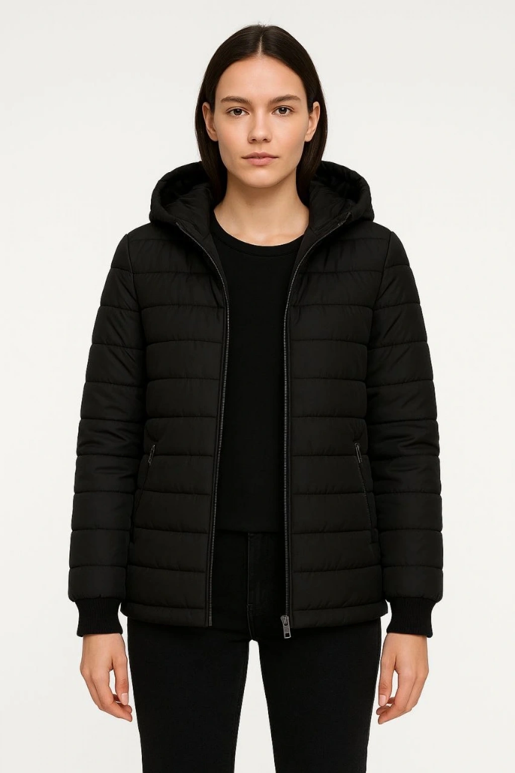 KADIN BOMBER MONT CEKET – SU İTİCİ KUMAŞ, KAPİTONE ASTARLI, FERMUARLI, KIŞLIK - SİYAH