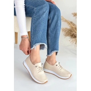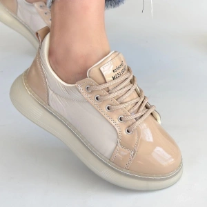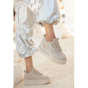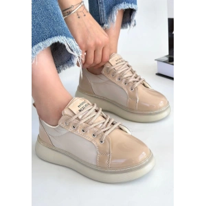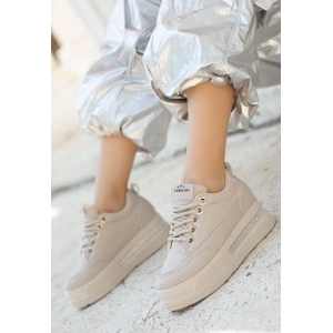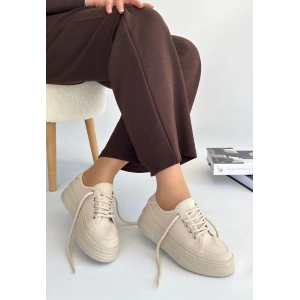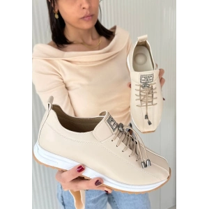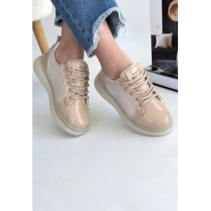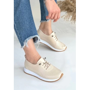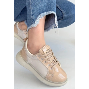 Monya Bej Cilt Bağcıklı Spor Ayakkabı