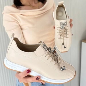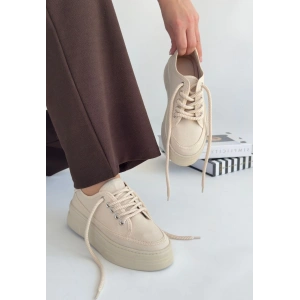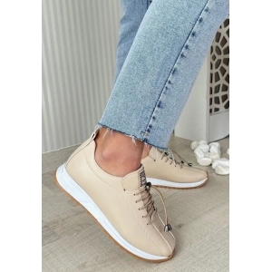 Lulu Bej Cilt Bağcıklı Spor Ayakkabı