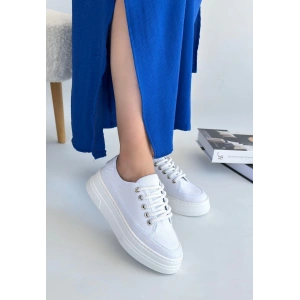Carin Beyaz Keten Bağcıklı Spor Ayakkabı