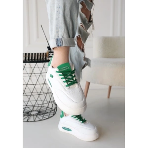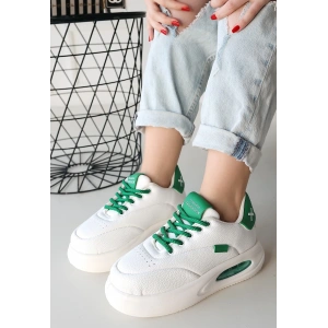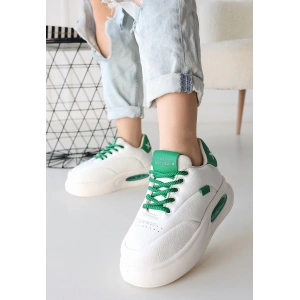 Chris Beyaz Cilt Yeşil Detaylı Bağcıklı Spor Ayakkabı