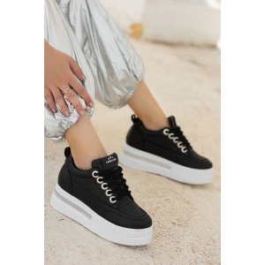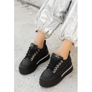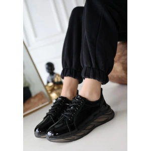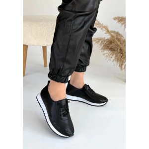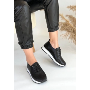 Lulu Siyah Cilt Beyaz Tabanlı Bağcıklı Spor Ayakkabı