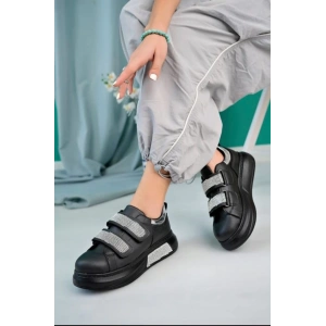 Nino Siyah Cilt Cırt Cırtlı Spor Ayakkabı