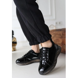 Lulu Siyah Cilt Bağcıklı Spor Ayakkabı