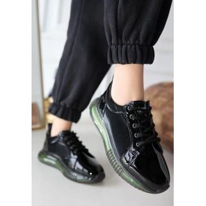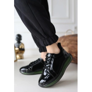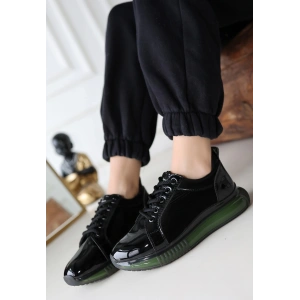 Piona Siyah Rugan Yeşil Tabanlı Spor Ayakkabı