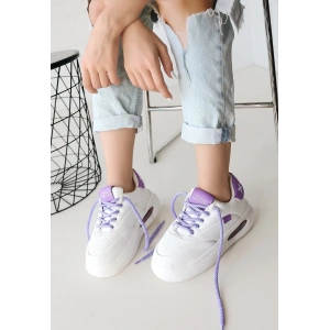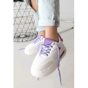 Chris Beyaz Cilt Lila Detaylı Bağcıklı Spor Ayakkabı