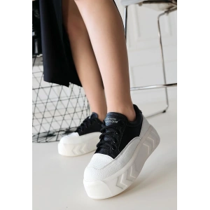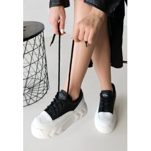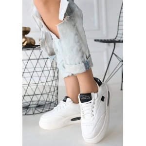 Chris Beyaz Cilt Siyah Detaylı Bağcıklı Spor Ayakkabı