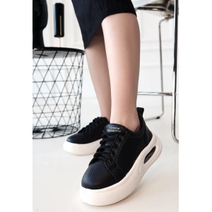 Chris Siyah Cilt Bağcıklı Spor Ayakkabı