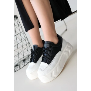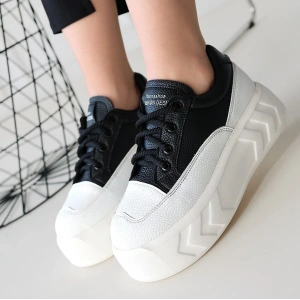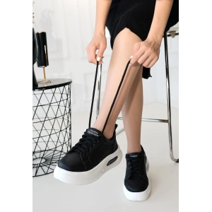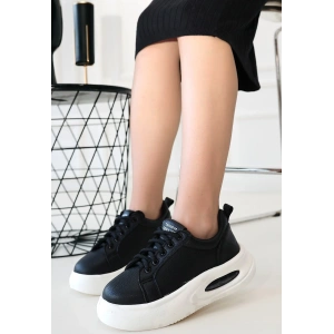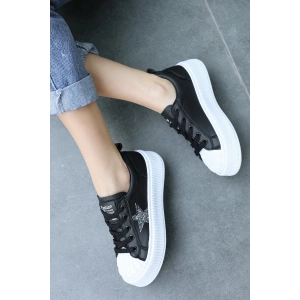 Piata Siyah Cilt Beyaz Tabanlı Bağcıklı Spor Ayakkabı