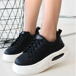Emwa Siyah Cilt Bağcıklı Spor Ayakkabı