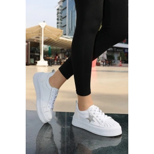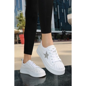 Piata Beyaz Cilt Bağcıklı Spor Ayakkabı