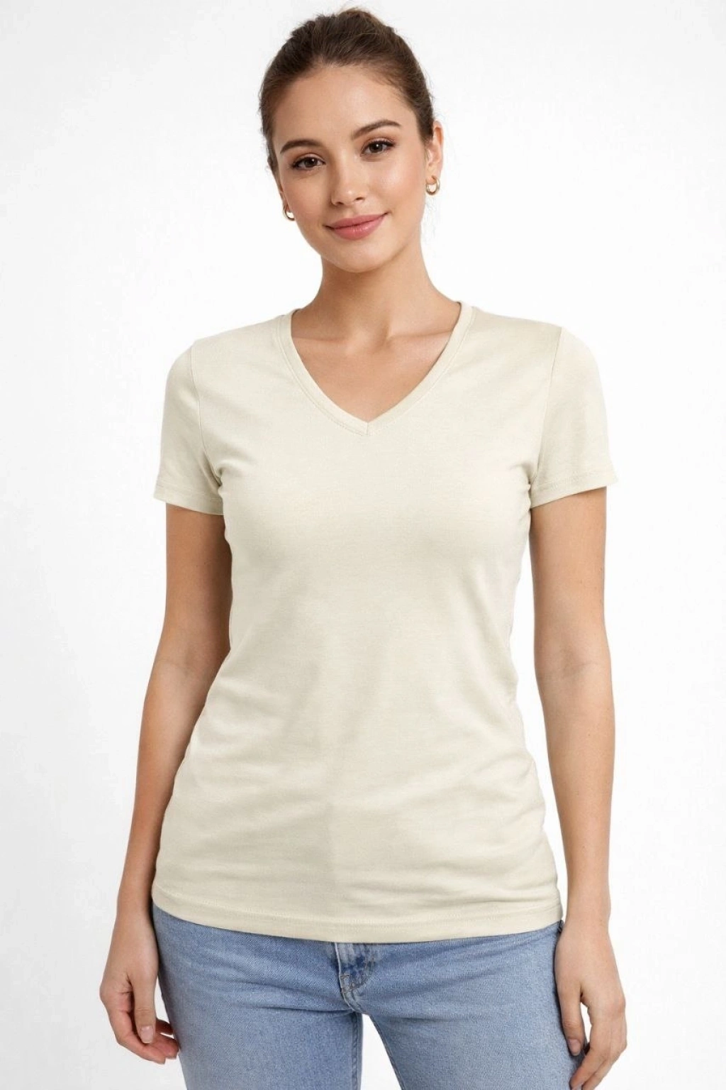 Kadın T-Shirt V Yaka Slim Fit Likralı Tişört Günlük Basic Body - Sarı