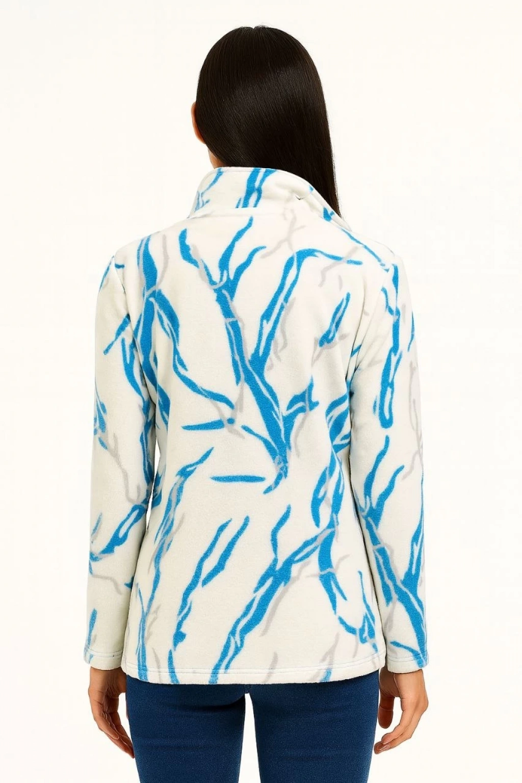 Kadın Tam Fermuarlı Desenli Polar Sweat – Siyah Multicolor Figür Desen Yakalı, Uzun Kollu, Oversize Rahat Kalıp - Beyaz