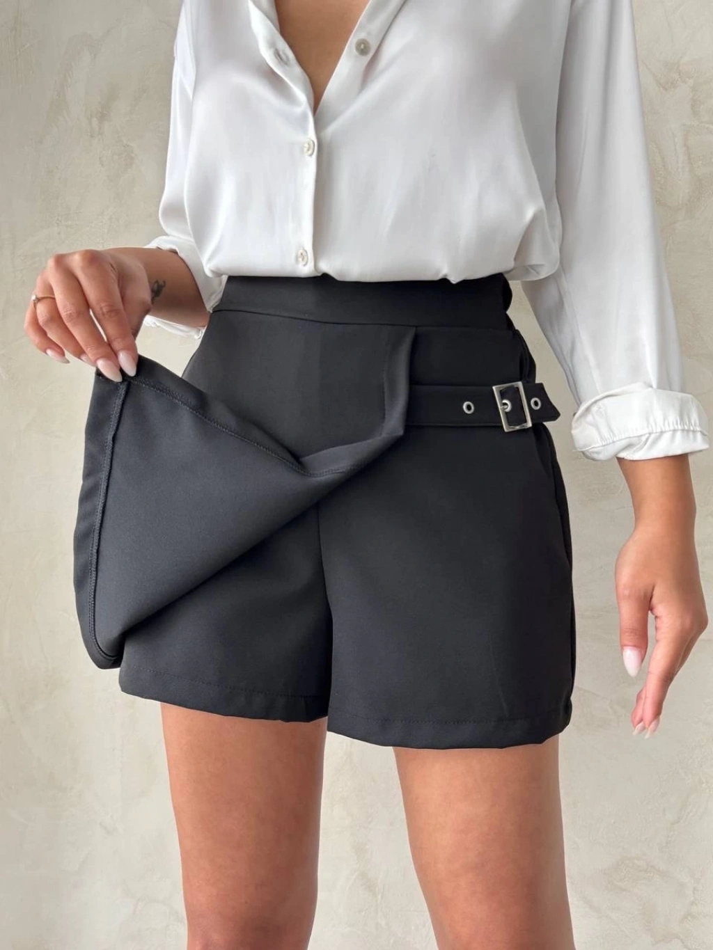 İki düğmeli şort etek siyah h26414