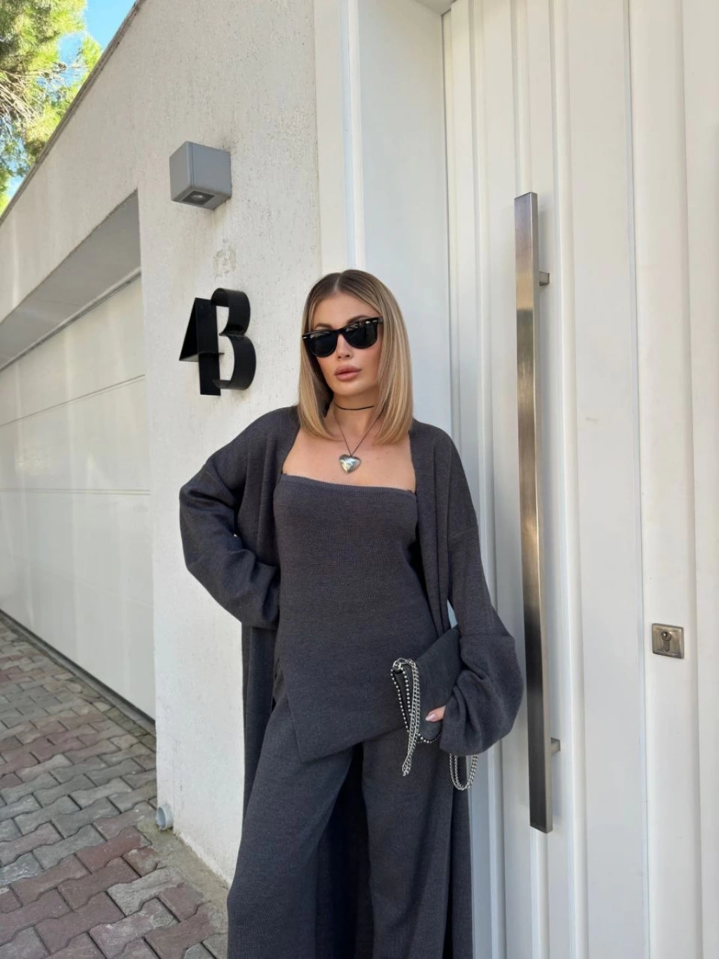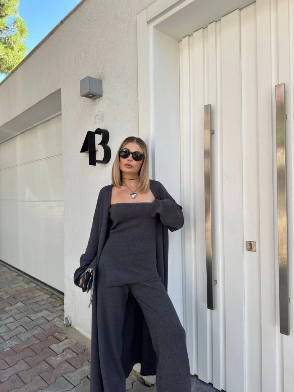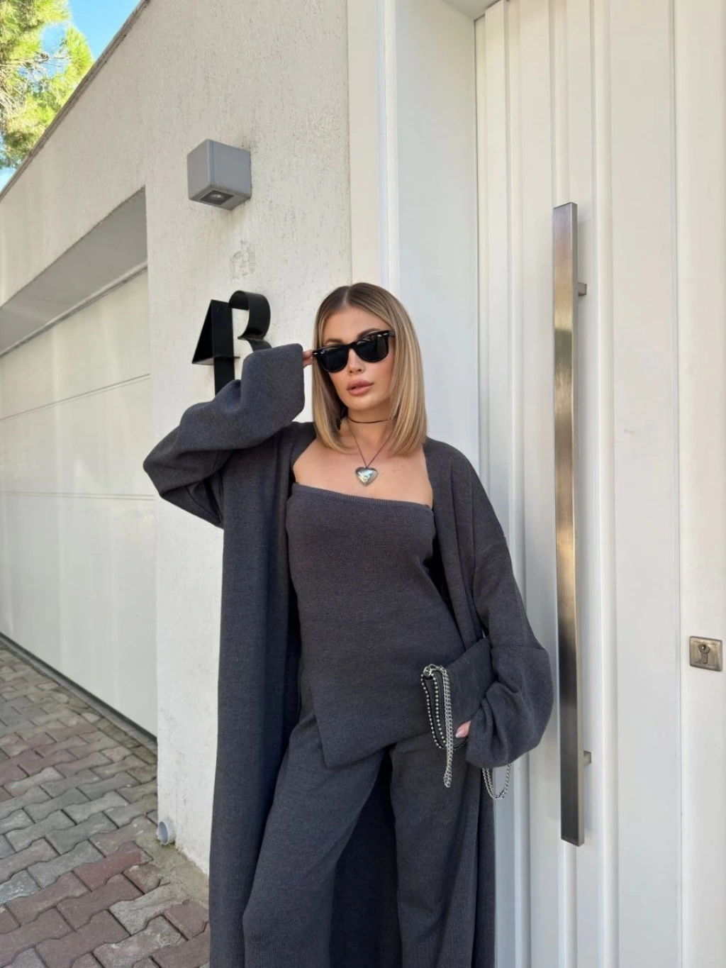 OSY MODAL YUMUŞAK DOKULU KUMAŞ KADIN PARÇALI BİSİKLET YAKA T-SHİRT KISA ŞORT İKİLİ TAKIM - ANTRASİT