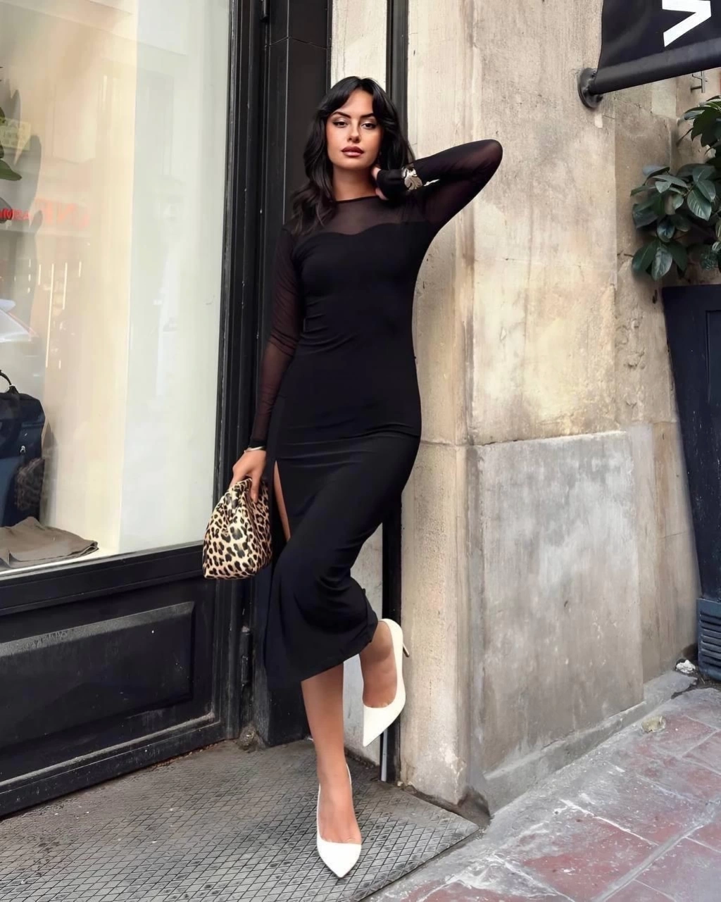 Fermuar detaylı fitilli şardonlu elbise siyah a3178