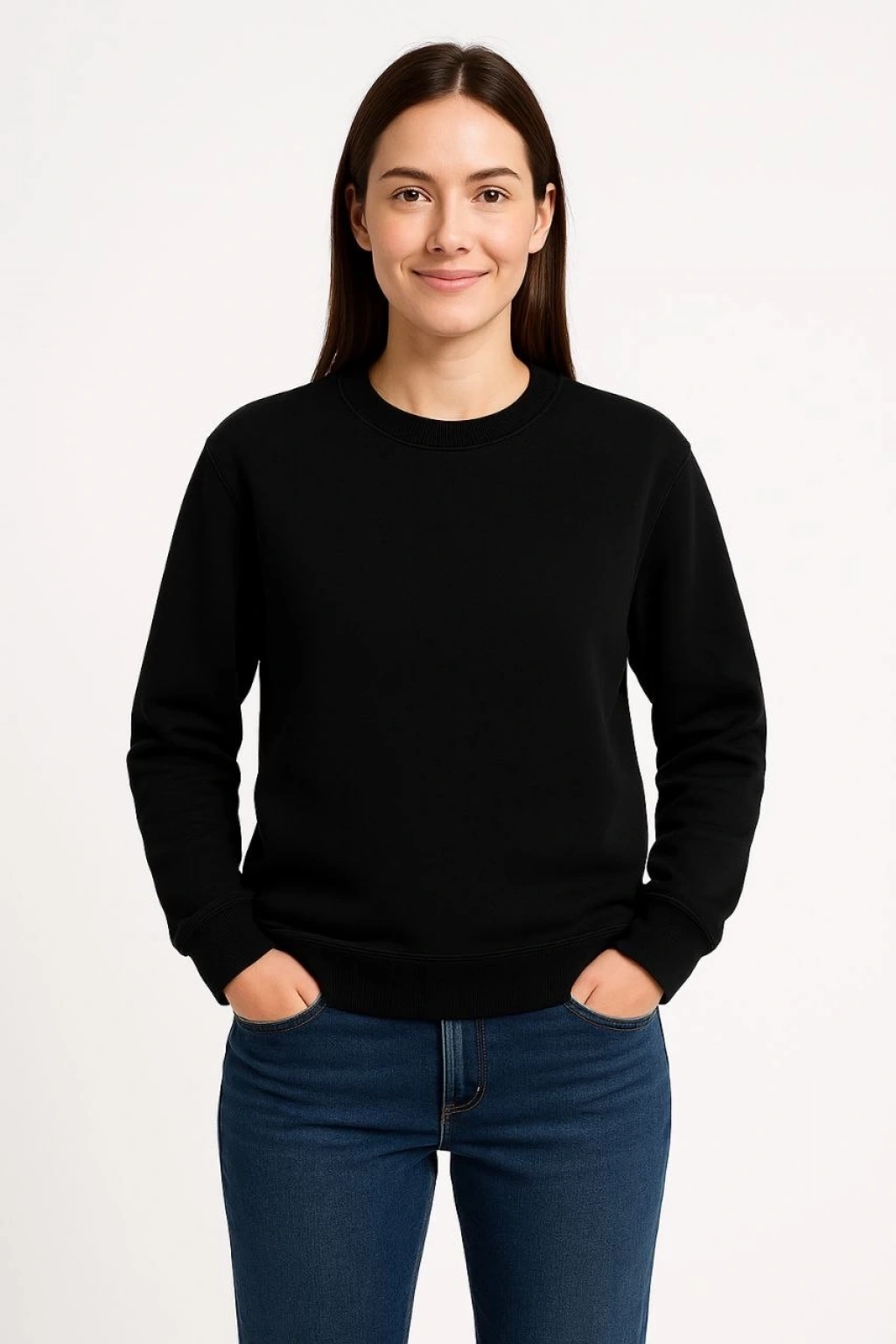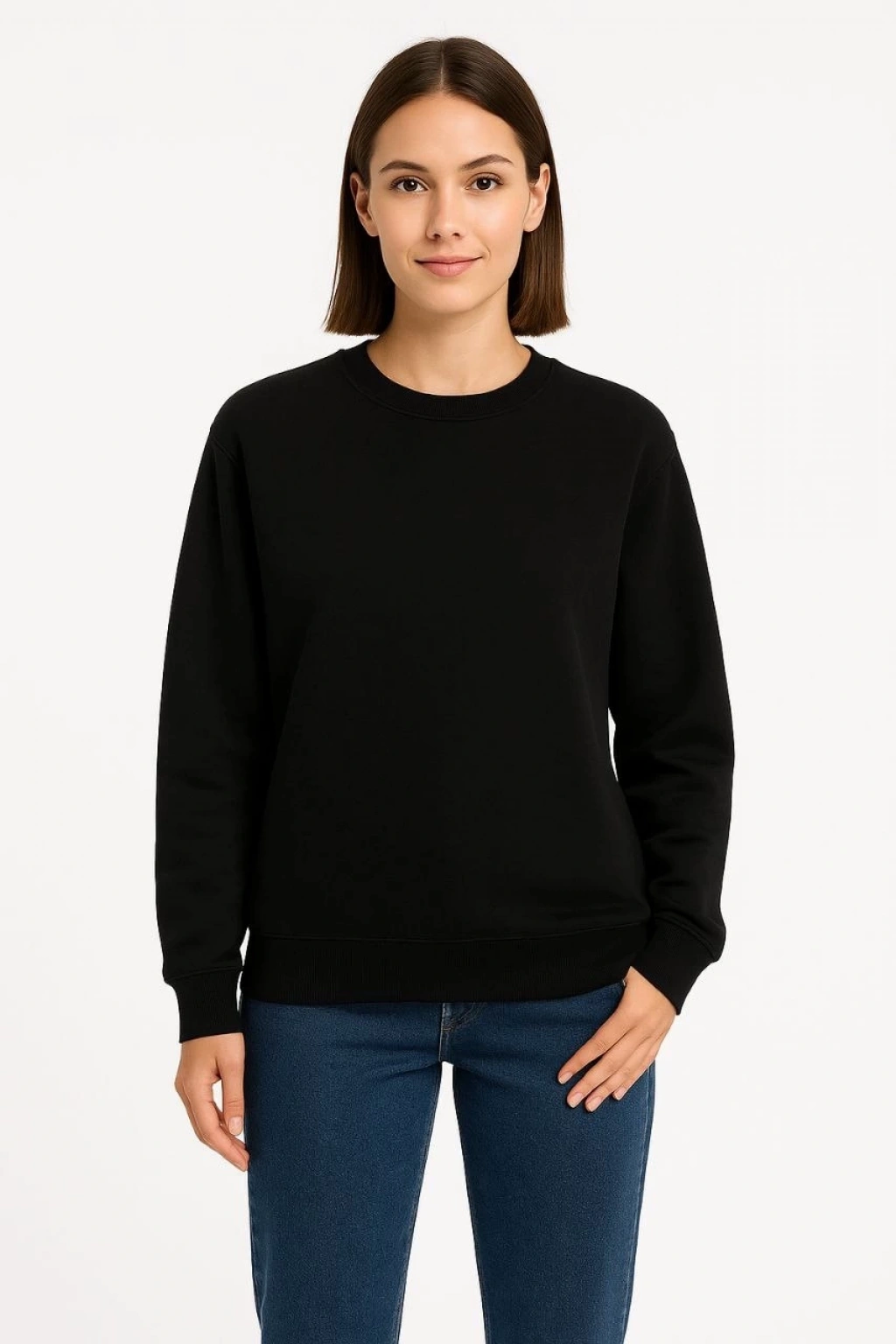 Kadın Üç İplik Düz Bisiklet Yaka SweatShirt - Beyaz