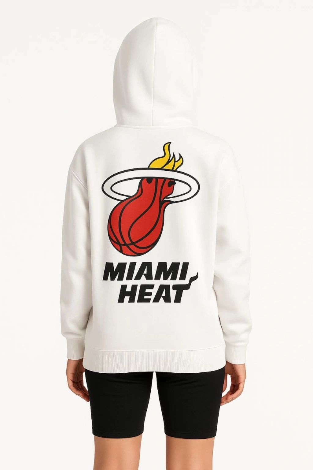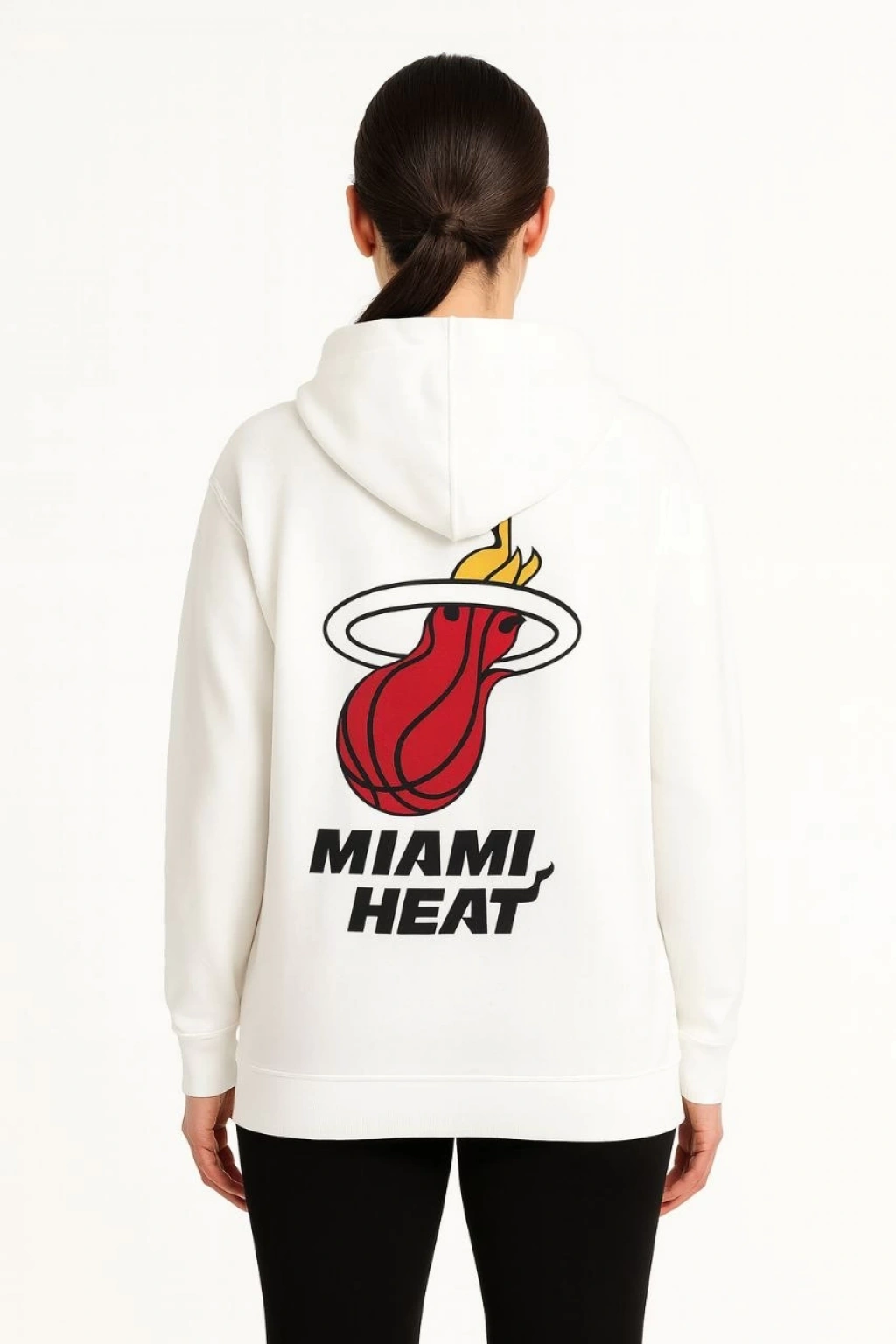 Kadın Kapüşonlu Üç İplik Sweatshirt – Beyaz Strong Heykel Baskılı, Rahat Kalıp, Kanguru Cepli Modern Tasarım