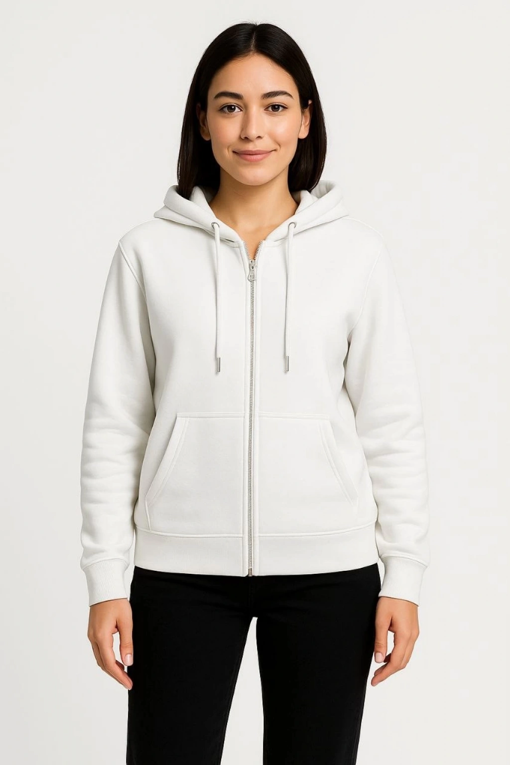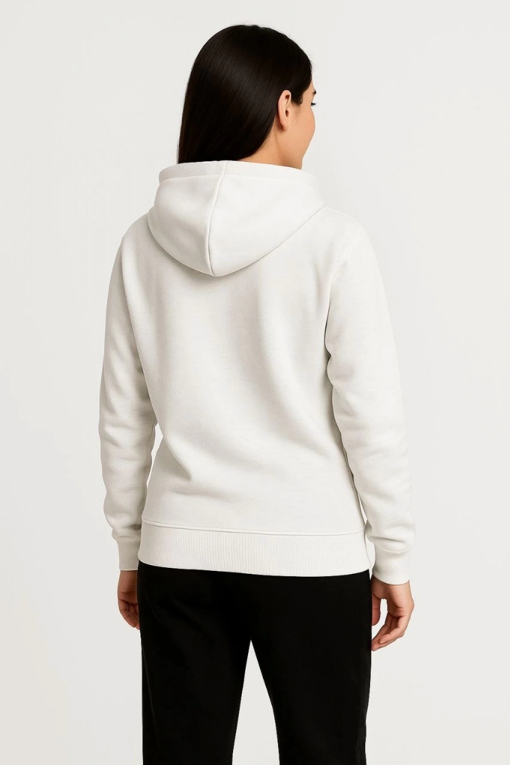 Kadın Üç İplik Kapüşonlu Kanguru Çepli SweatShirt hoodie - Beyaz