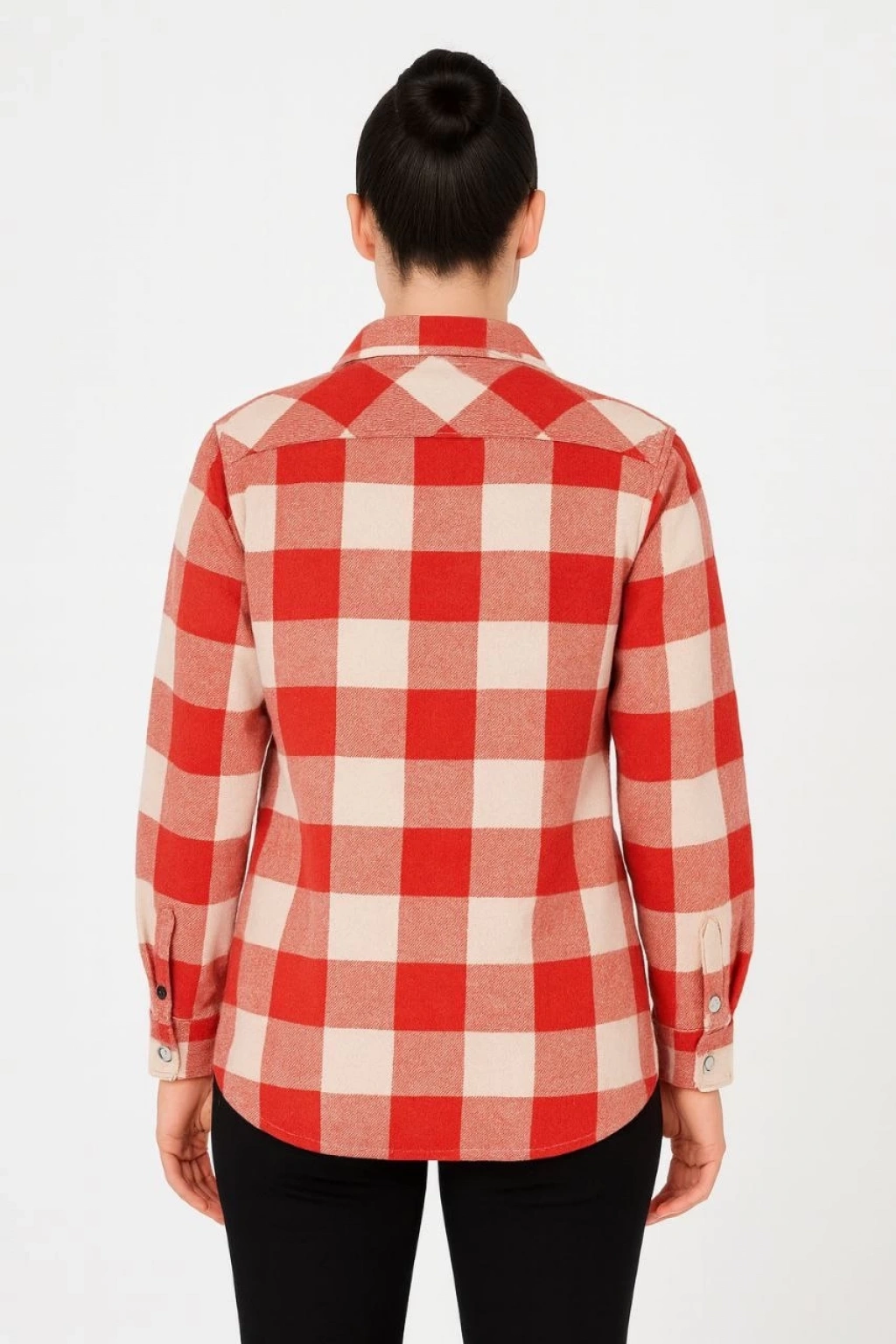 Kadın Oduncu Gömlek – Uzun Kollu, Şardonlu Kumaş, Kırmızı Beyaz Kareli Desen, Regular Fit, Çift Cepli, Manşetli Günlük Şık Stil - Bordo