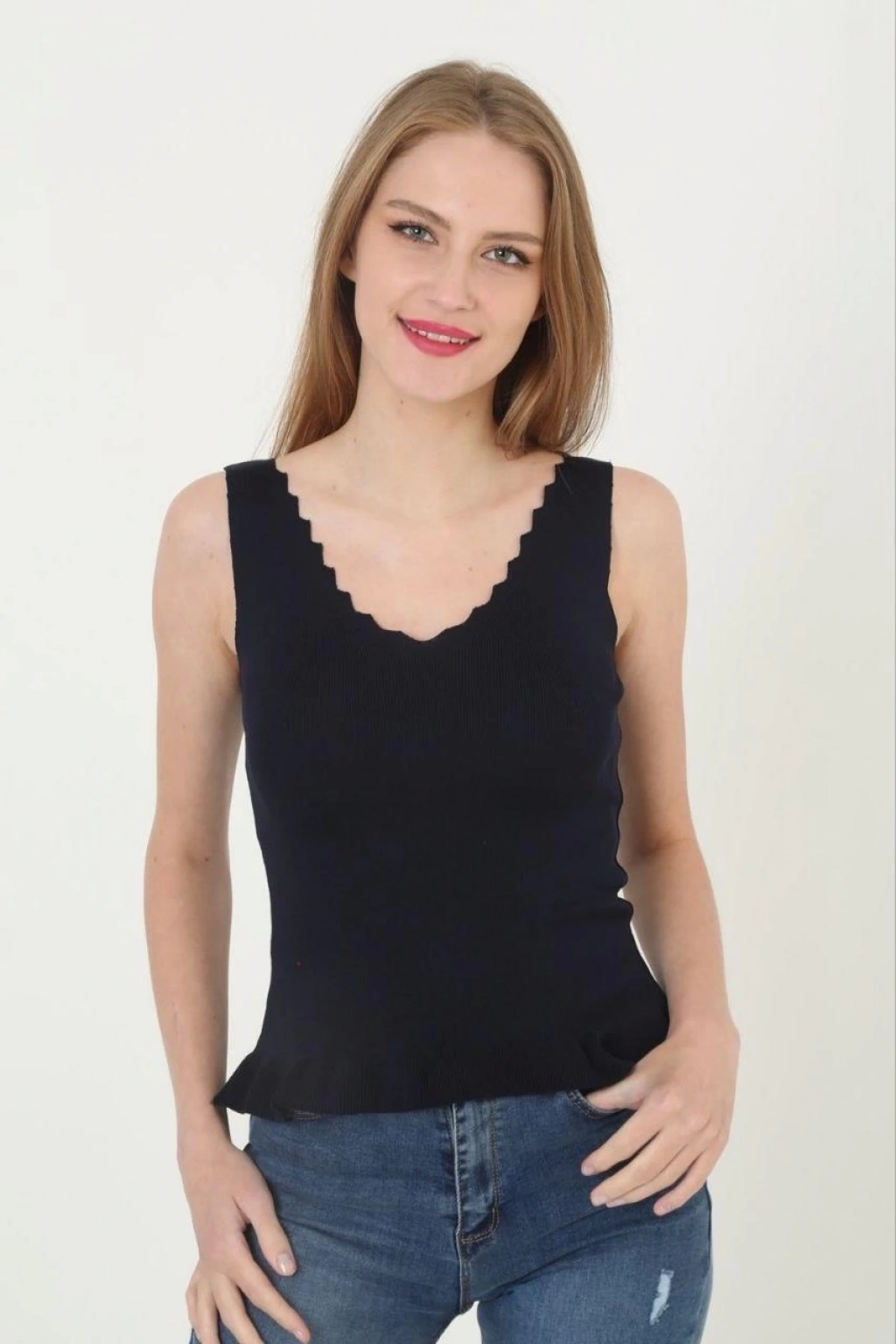 Kadın V Yaka Fırfır Detay Crop - Siyah