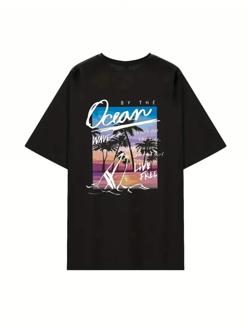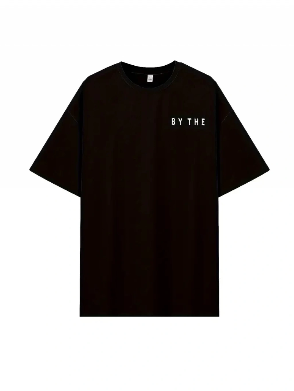 20/1 Penye Compack Day One Baskılı Oversize Bisiklet Yaka T-shirt - Siyah