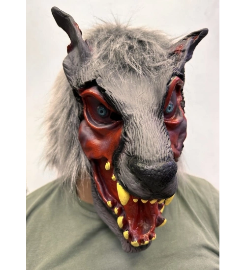 Kafaya Tam Geçmeli Lateks Dişli Ağzı Açık Kurt Maskesi NessiWorld