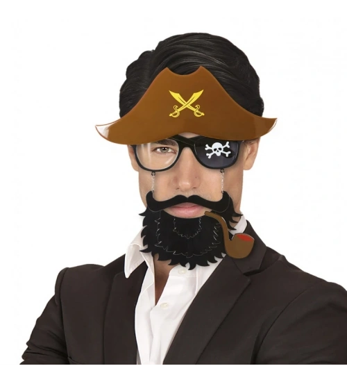 Kahve Renk Şapkalı Siyah Sakallı Pipolu Jack Sparrow Denizci Korsan Gözlüğü 24x25 cm