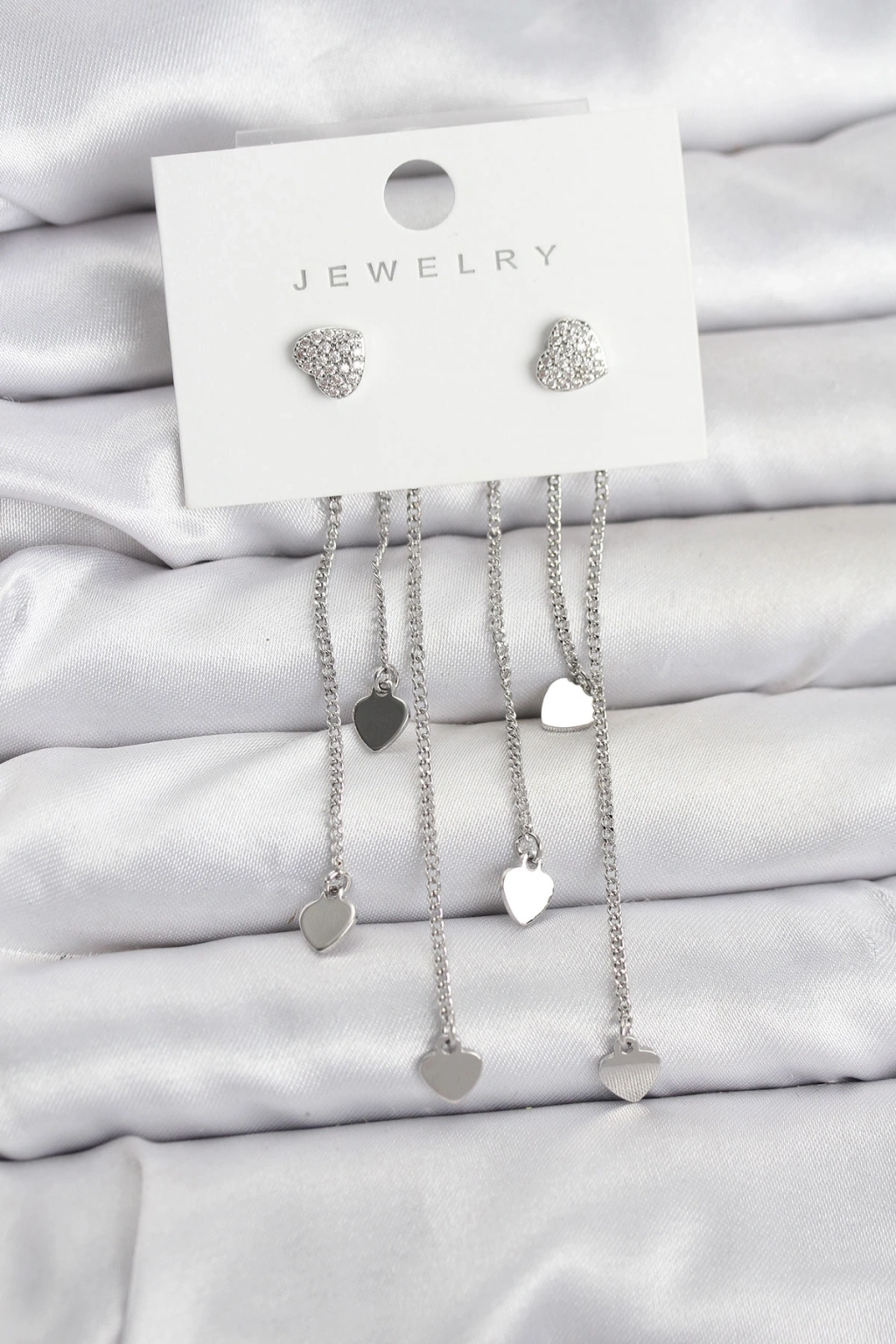 Kalp Model Gümüş Renk Pirinç Sallantılı Kadın Küpe