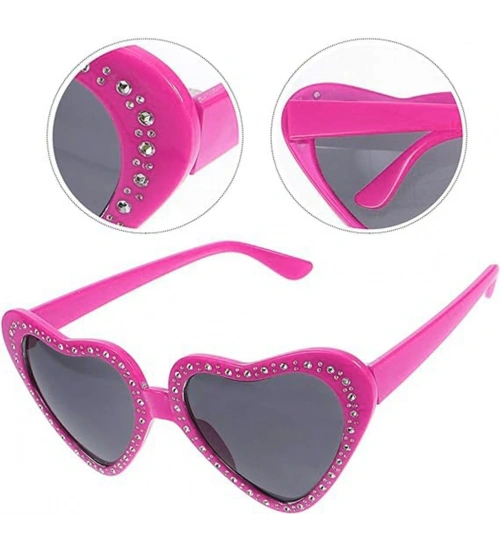 Kalp Şekilli Taşlı Parti Gözlüğü Pembe Renk 6x16cm