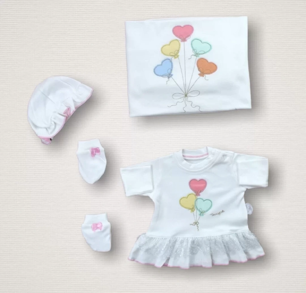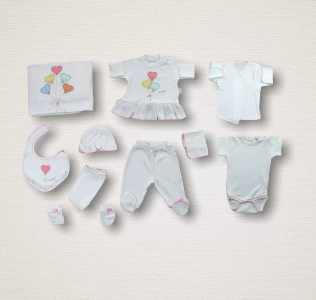 Kalpli Uçan Balon Nakışlı 10lu Zıbın Takımı Hastane Çıkışı Ekru