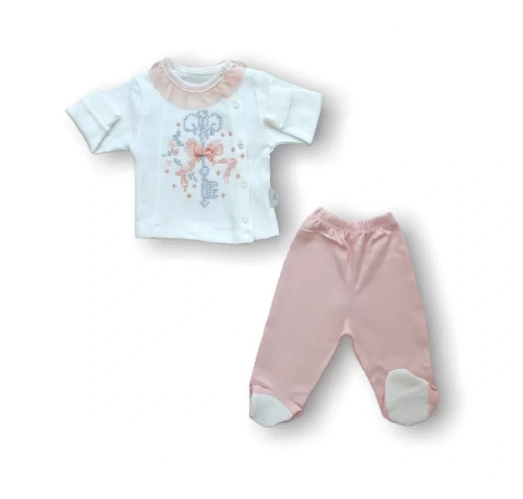 Kanaviçe Nakışlı 5li Zıbın Takımı Hastane Çıkışı Pudra