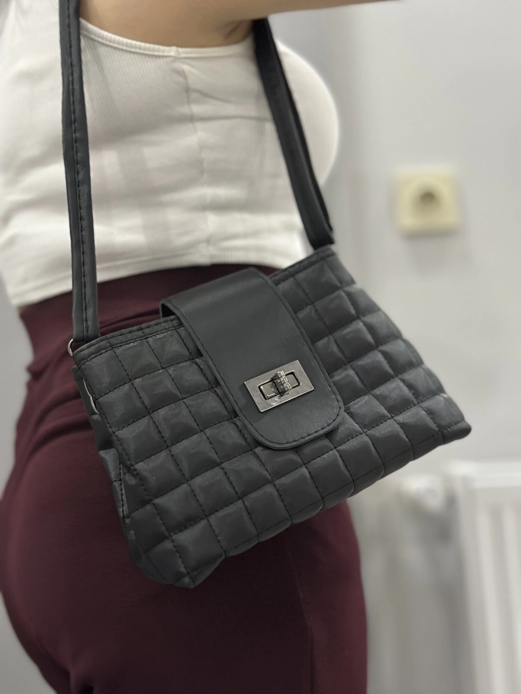 Uzun zincir kollu kapaklı inci çanta beyaz