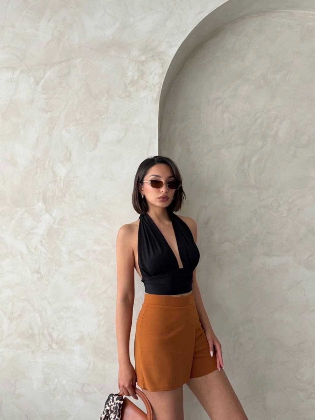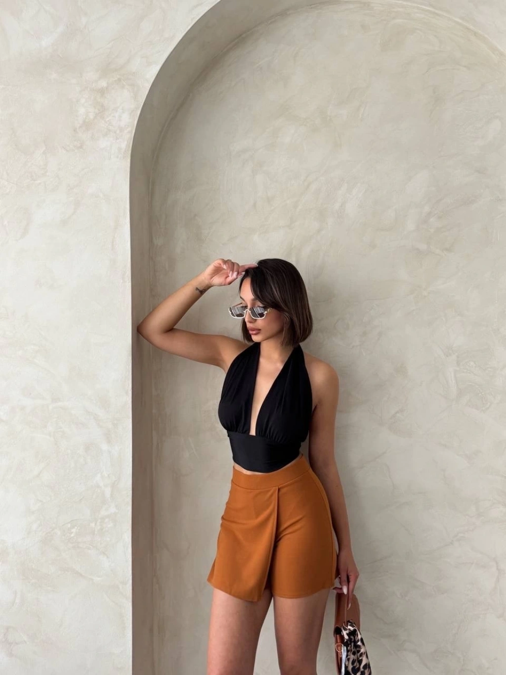 Kapaklı kaşe şort etek siyah beyaz kazayağı h261218