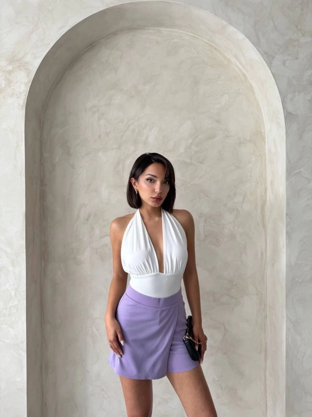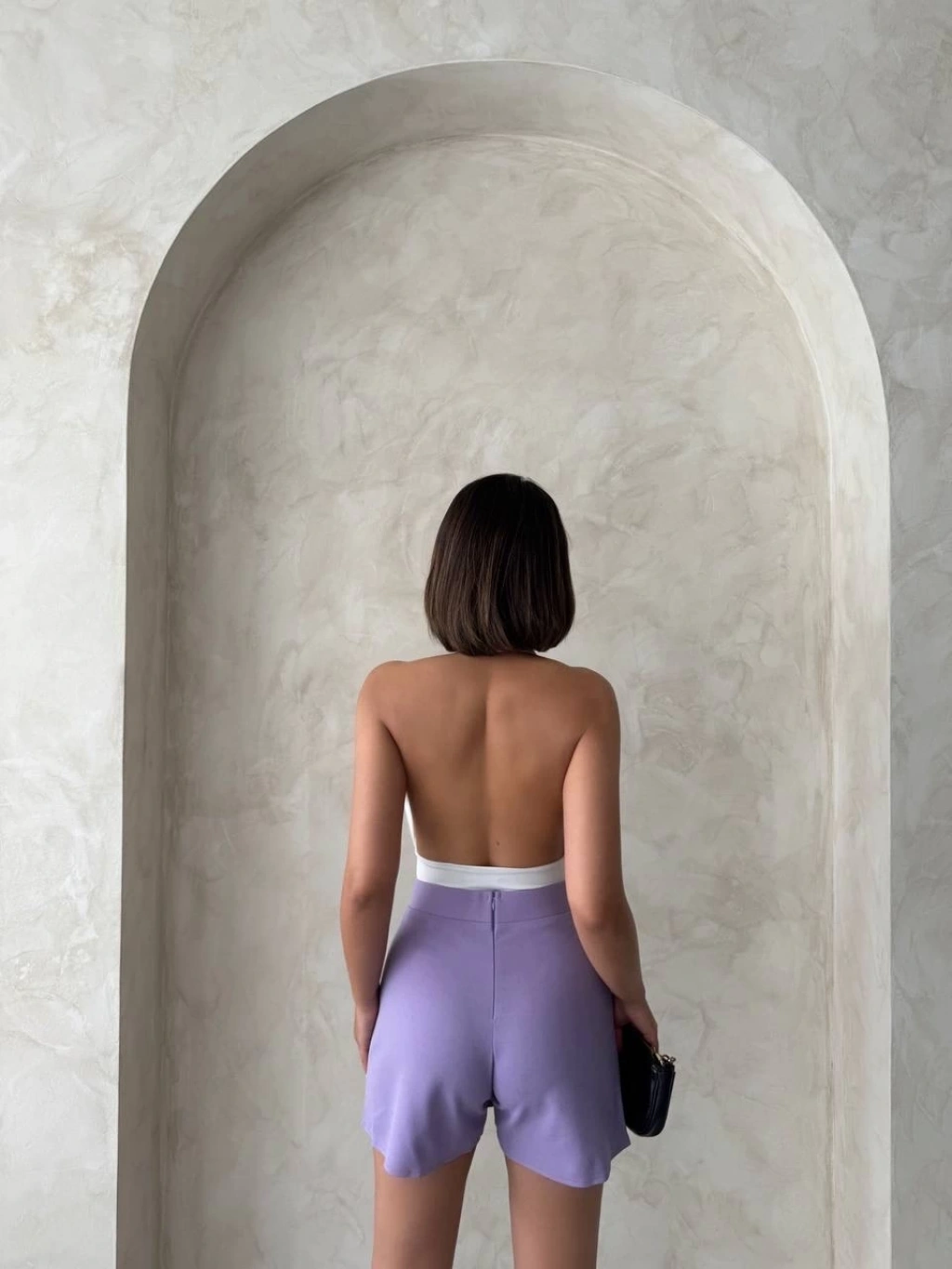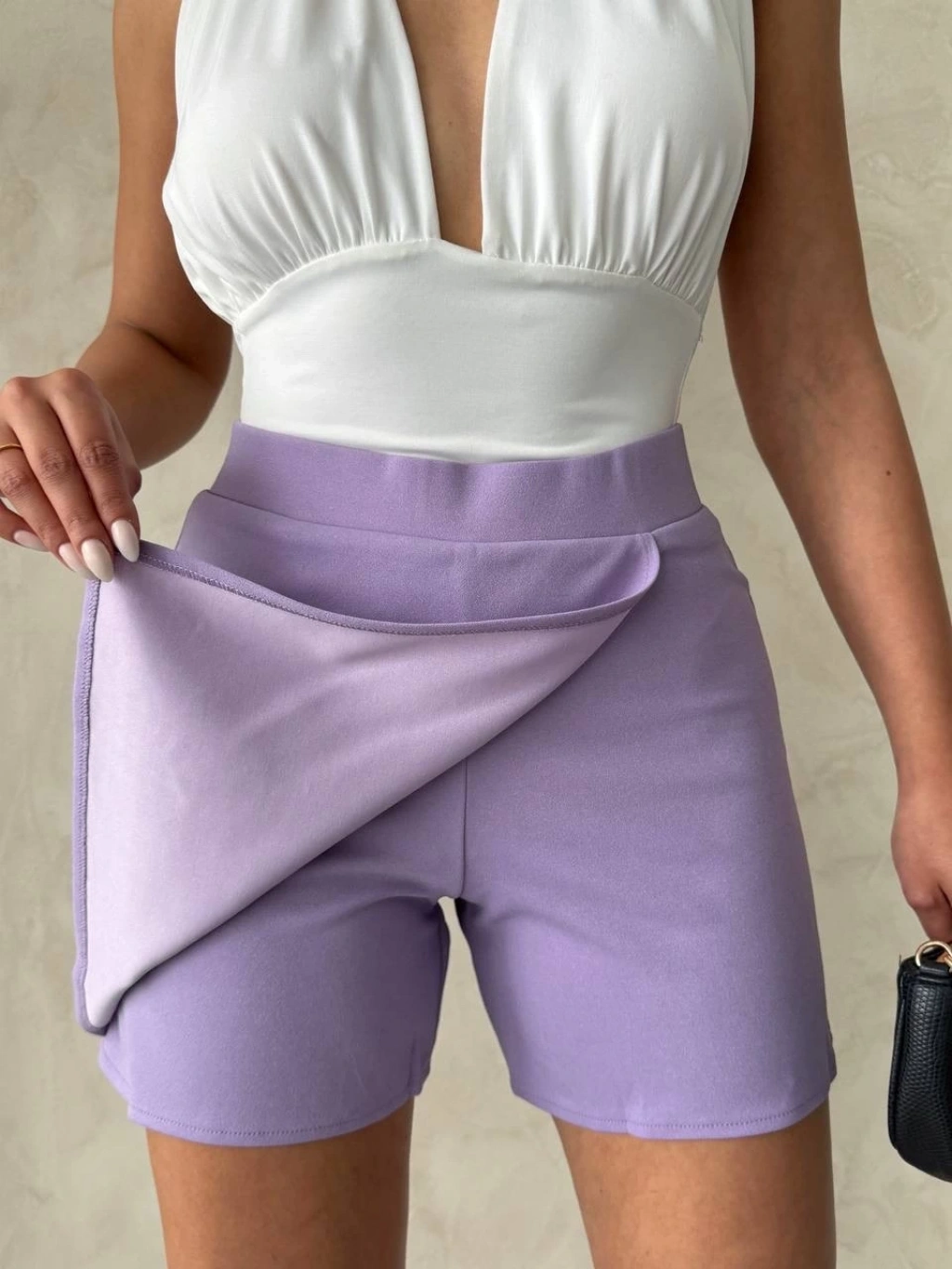 Müslin kumaş şort bağcıklı lila pt