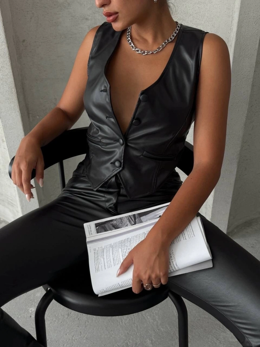 Kaplama düğmeli deri yelek düğme ve şık tasarı günlük hayatta ve özel günlerde kullanılabilir özgün bir parça