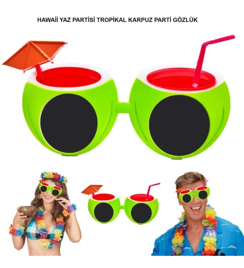 Karpuz Şekilli Tropikal Hawaii Yaza Merhaba Parti Gözlüğü