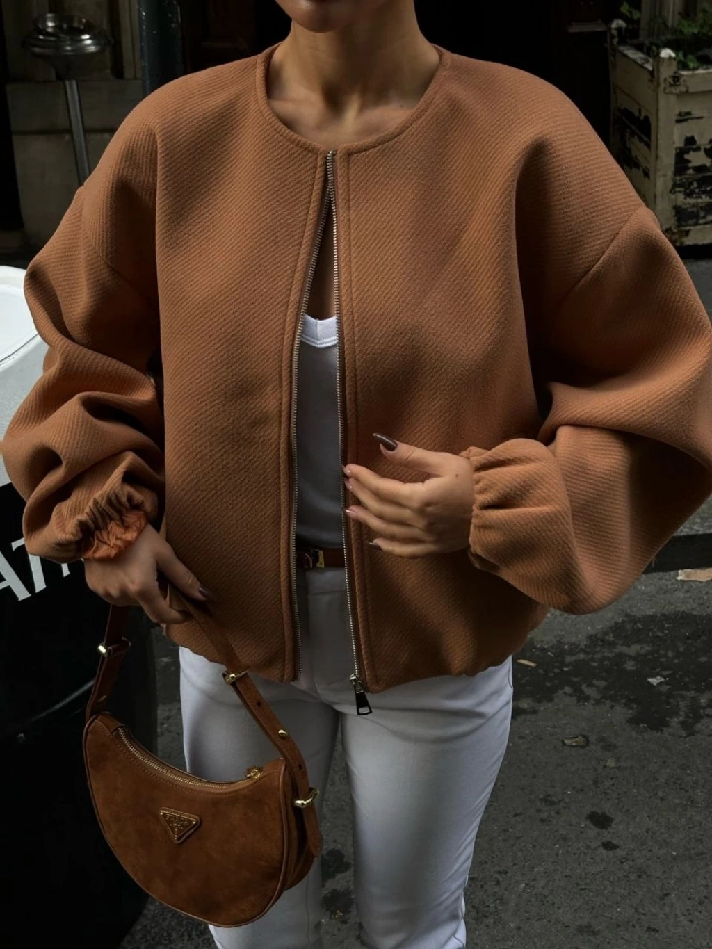 Kadın Oversize Bomber Ceket – Siyah, Fermuarlı, Sokak Modası Tarzı Mont - Siyah