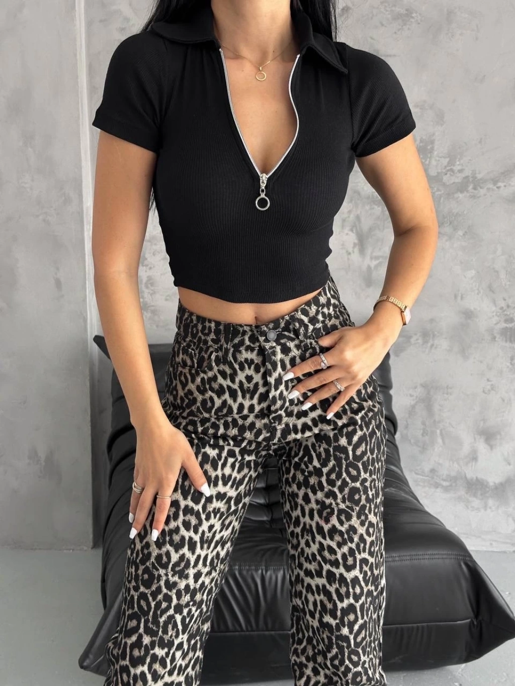 Omzu Açık Fermuarlı Bluz siyah T4330