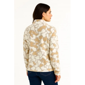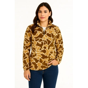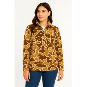 KADIN YARIM FERMUARLI DESENLİ POLAR SWEAT – HAKİ KAMUFLAJ YAKALI, UZUN KOLLU, OVERSİZE RAHAT KALIP - HAKİ