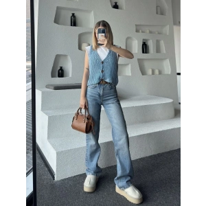 TRİKO KOLSUZ DÜĞMELİ YELEK - MAVİ